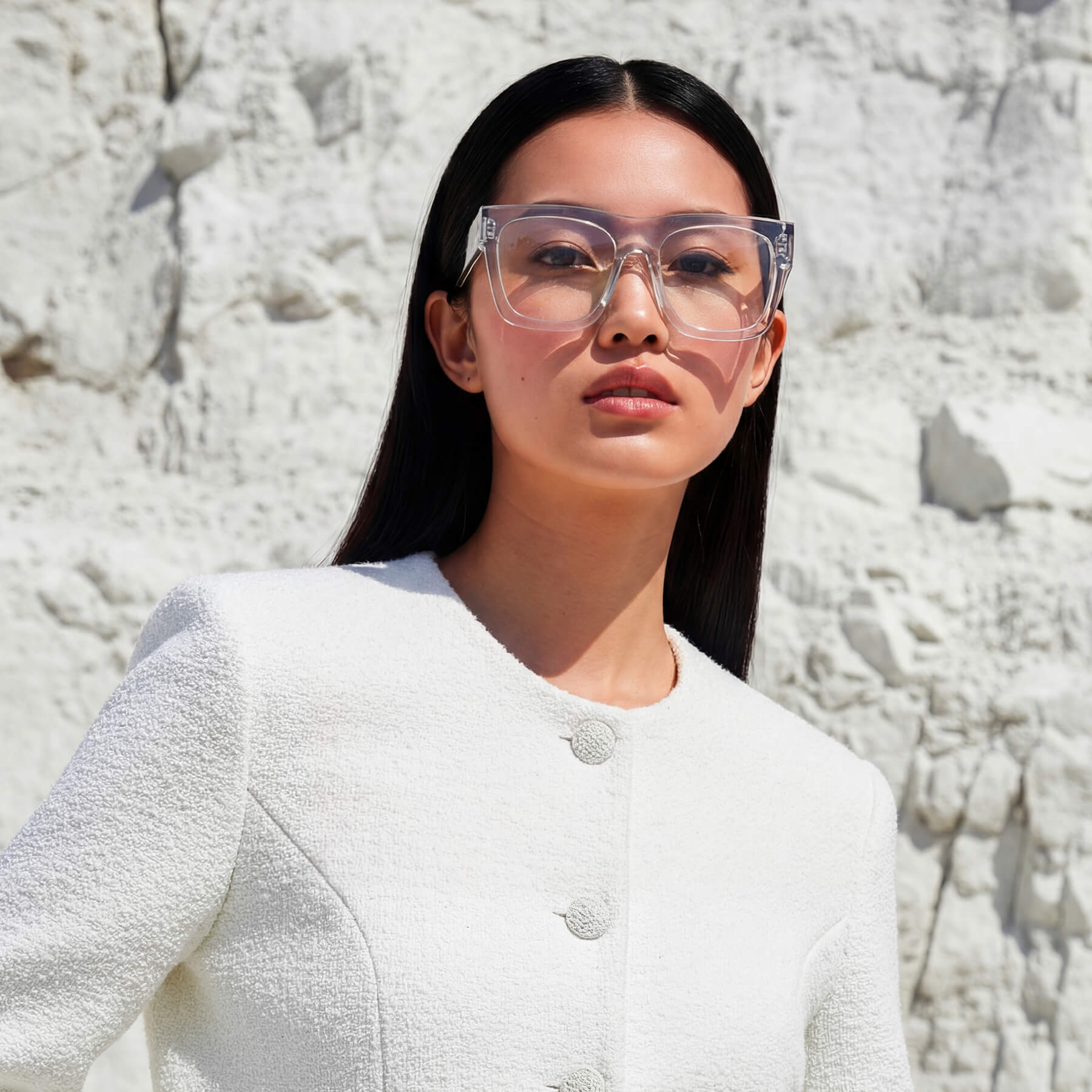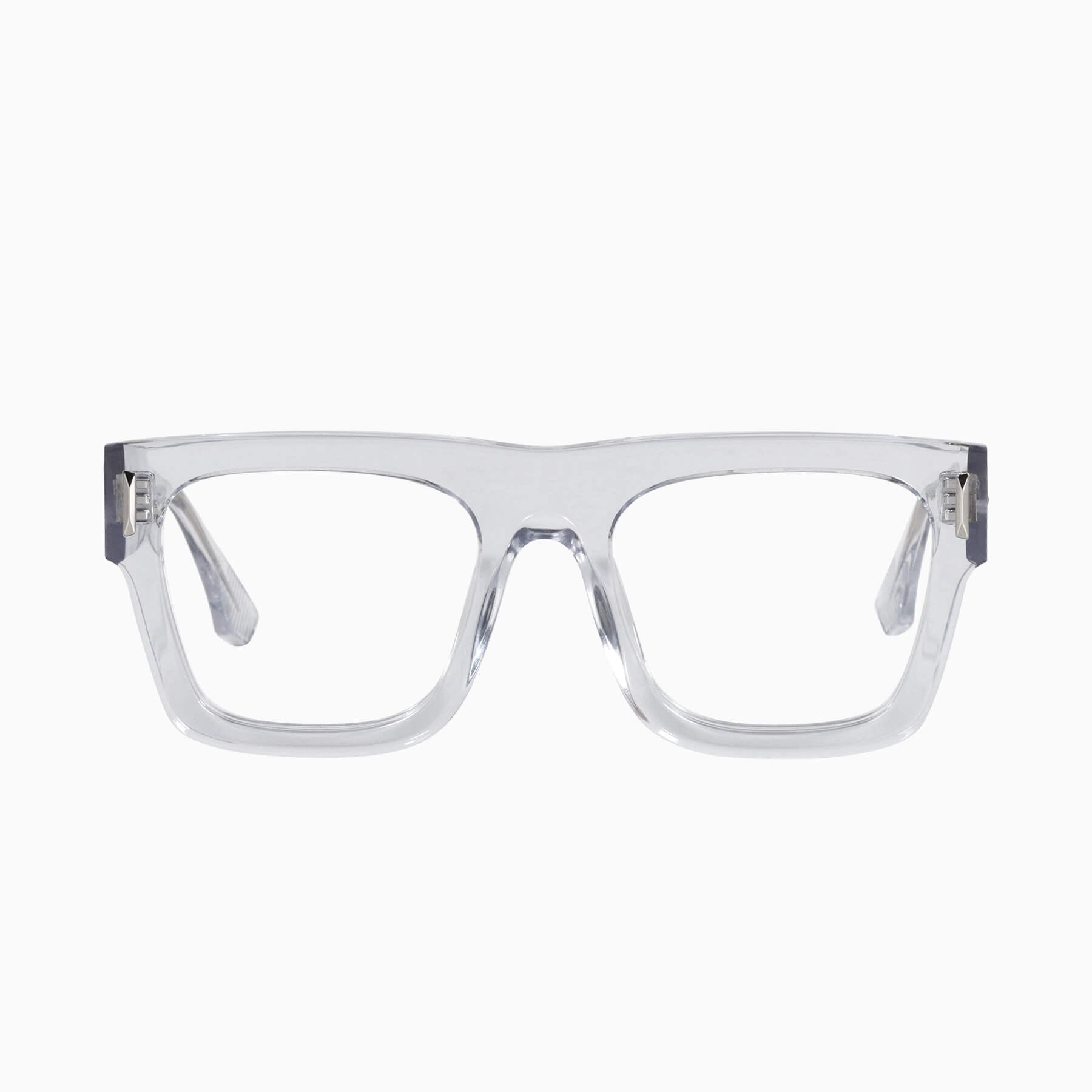 A bold, unisex frame boasting a rectangular silhouette and a 7mm thick front face. Featuring metal details and a transparent inner temple, the Alta is an approachable and wearable take on a statement frame.